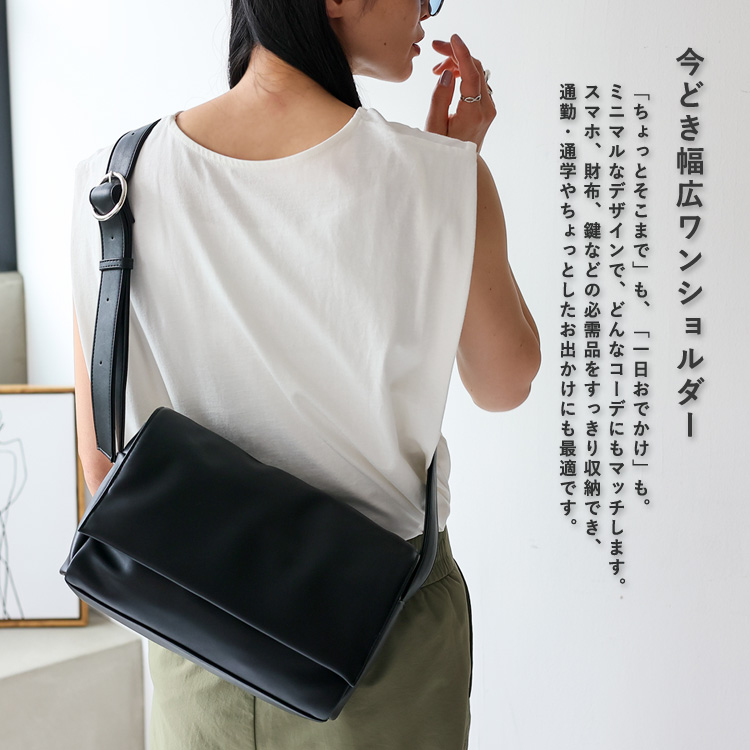 スマホ、財布、鍵などの必需品をすっきり収納でき、通勤・通学やちょっとしたお出かけにも最適です。