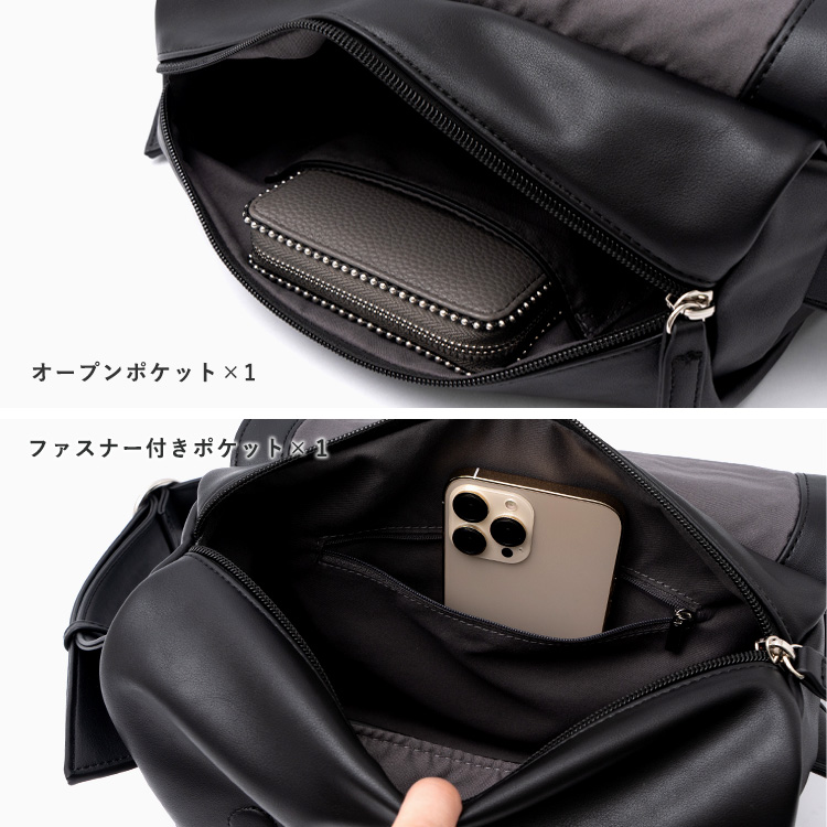 バッグ内外に複数のポケットを配置しているので細やかな収納を叶えます。