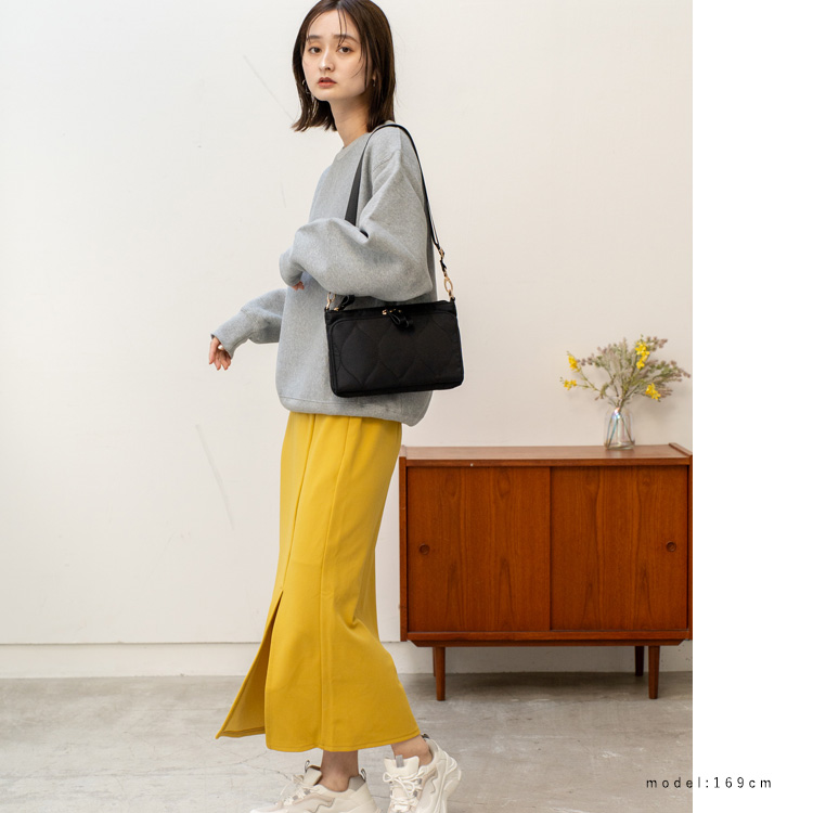 大きめのキルティングが女性らしく落ち着いた雰囲気に。