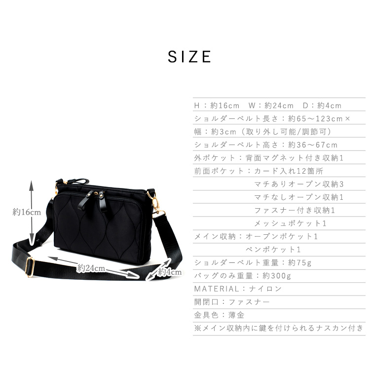 ●ショルダーベルト長さ:約65〜123cm×幅:約3cm(取り外し可能/調節可)