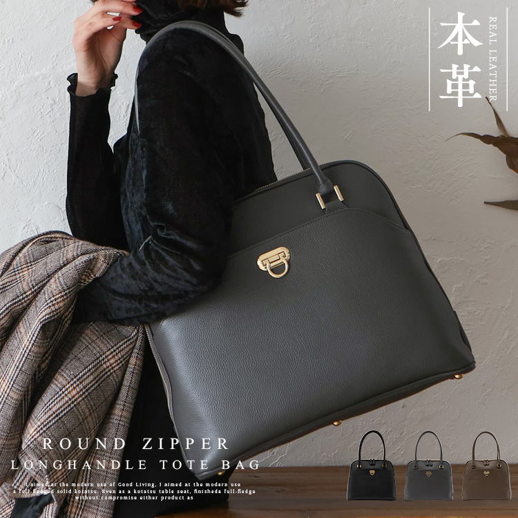 トートバッグ レディース 大きめ ラウンドファスナー a4 本革 自立 回転金具 PC収納 大容量 通勤バッグ sib-20063n aroco/アロコ