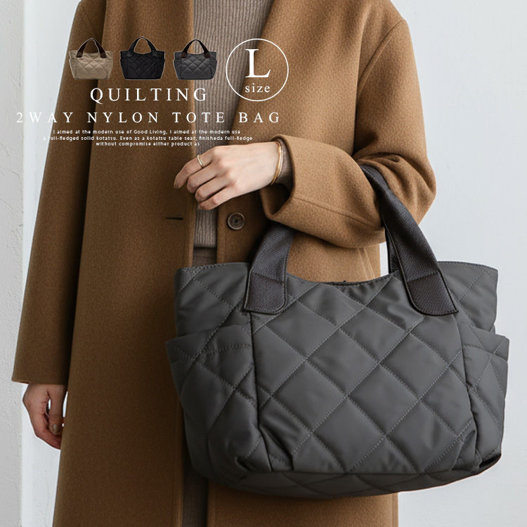 大きめのキルティングが女性らしい2wayビッグトートバッグ。