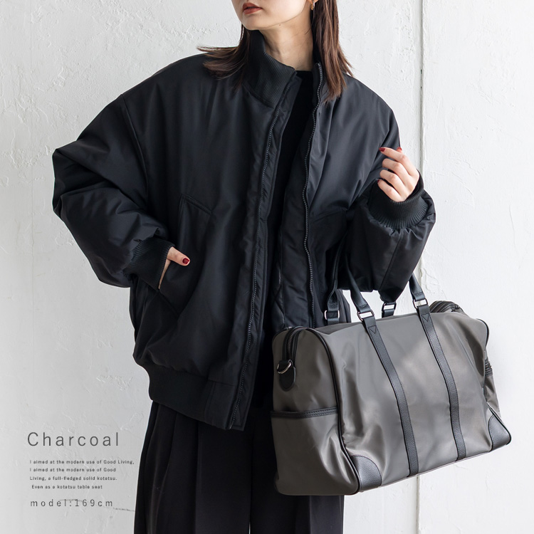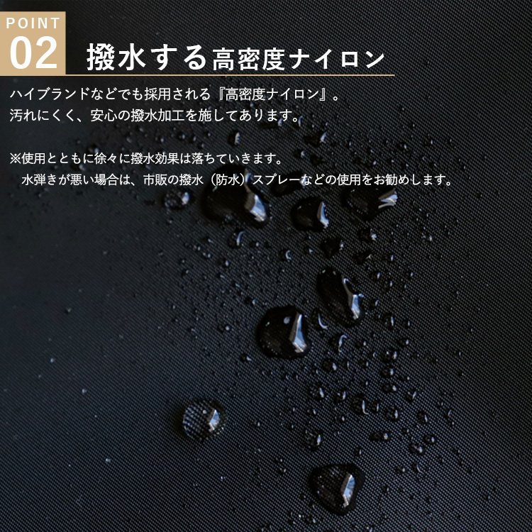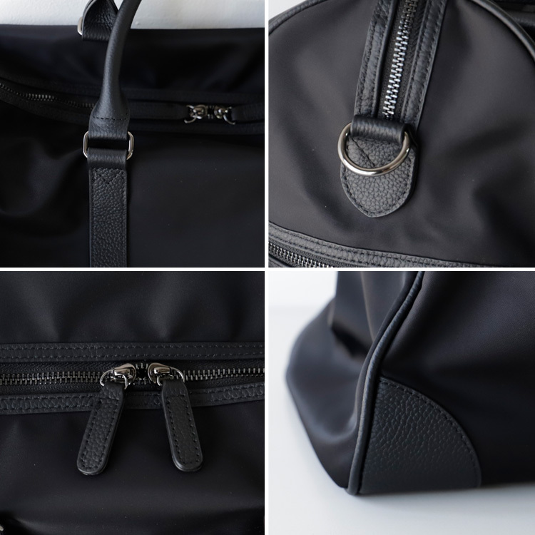 撥水加工のある高密度ナイロンと本革素材で、機能性も高く高級感のある印象に。