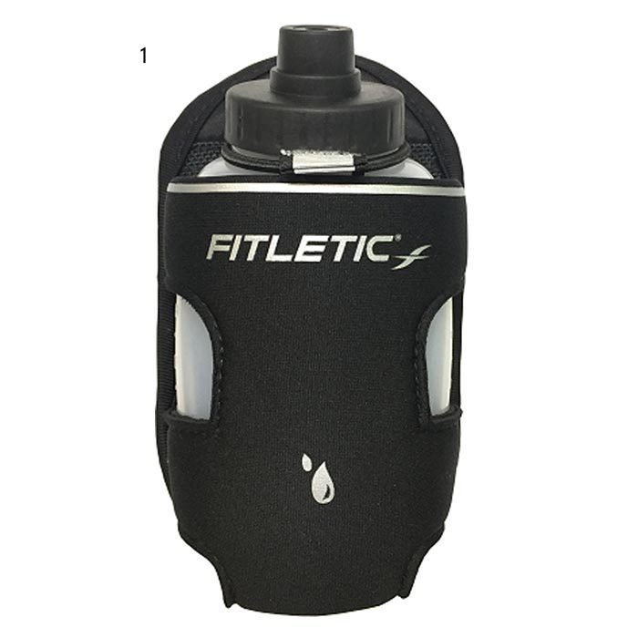 片手で水分補給できるボトルとネオプレーンカバーのセット。すべてのFITLETICベルトに追加装着可能です。