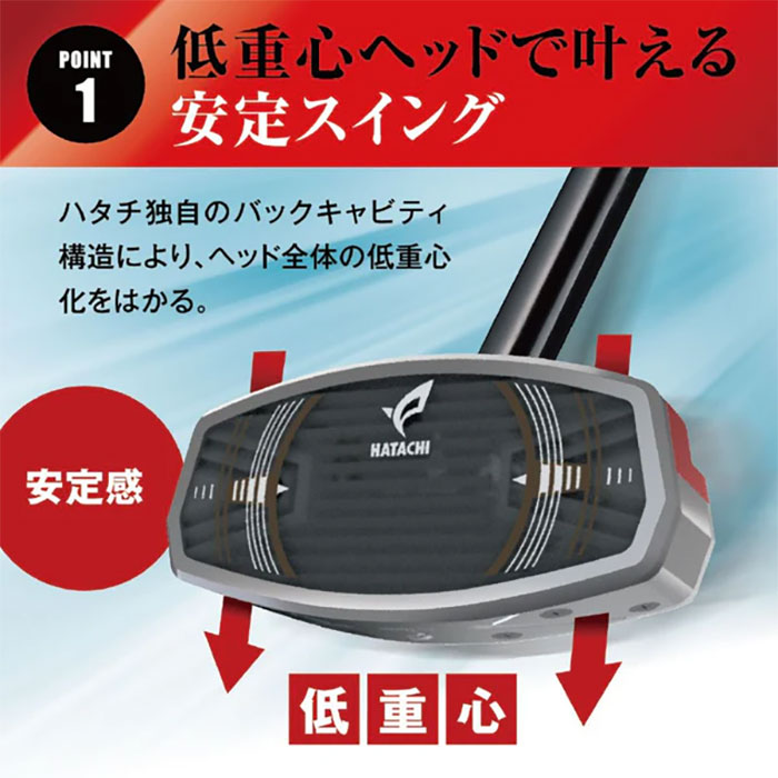 ハタチ独自のバックキャビティ構造により、ヘッド全体の低重心化をはかる。