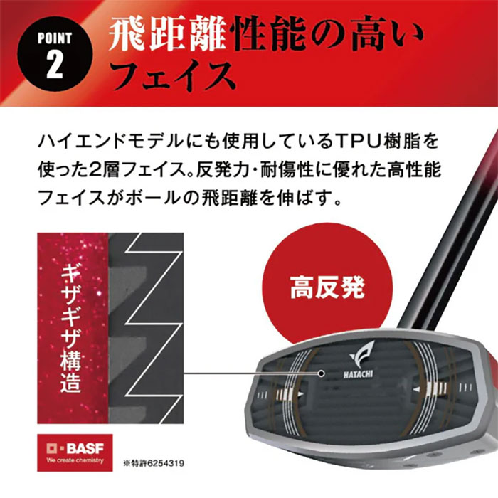 反発力・耐傷性に優れた高性能フェイスがボールの飛距離を伸ばす。