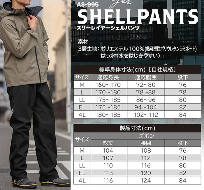 マック メンズ レインパンツ スリーレイヤーシェルパンツ レインウェア ボトムス アウトドア ロングパンツ AS995