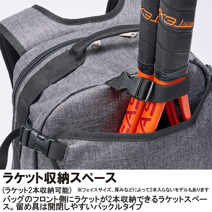 ラケット収納スペース、フロントポケット、内側収納ポケット