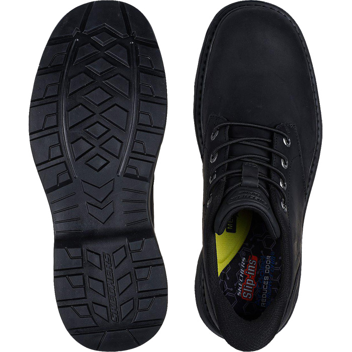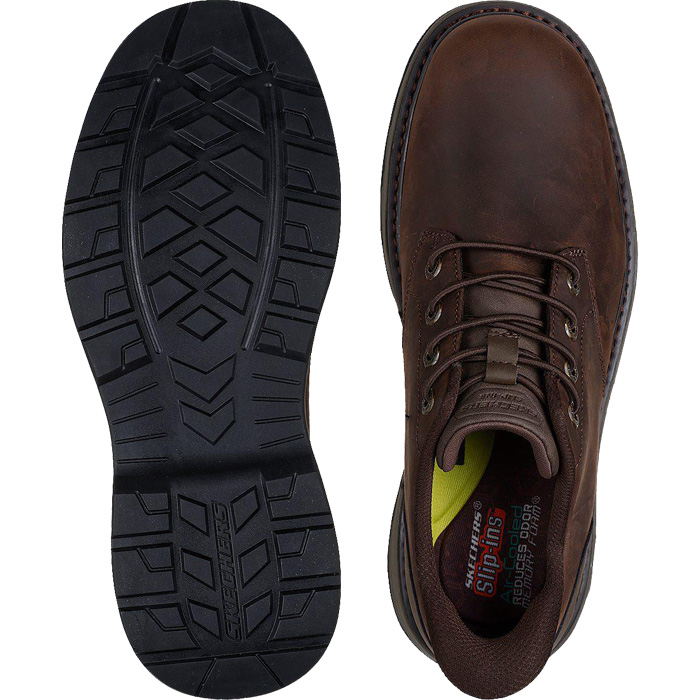 ストレッチレースを配したレザーのアッパー、木炭入りのSkechers Air-Cooled Memory Foam™(スケッチャーズ エアクールドメモリーフォーム)インソール、サポート力を高めるクッション機能搭載のSkechers Memory Arch™(スケッチャーズ メモリーアーチ)が特長です。