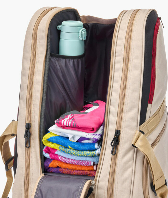 内部が細かく仕切られた小物用収納箇所はテニスの必需品を整理整頓しながら収納可能。