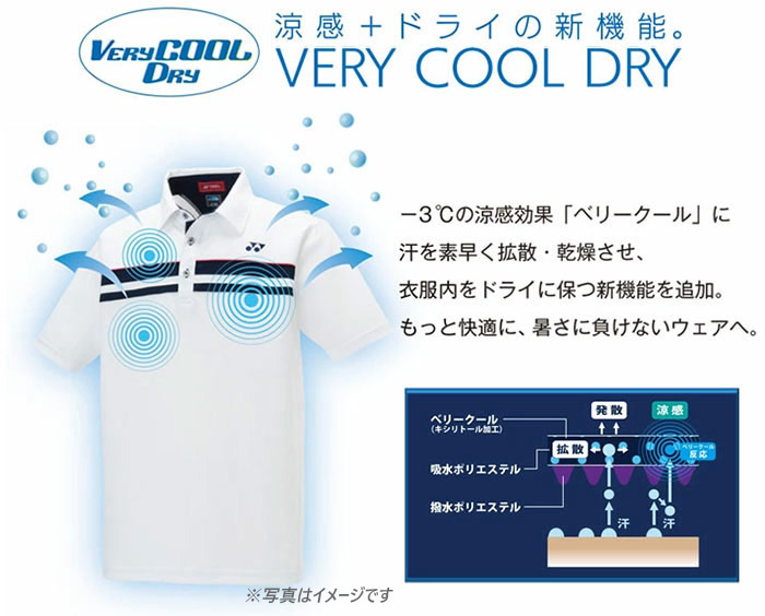ウェア内を3℃低く保つ「ベリークール」と肌面をドライにする機能を併せ持つ新素材です。生地に配合したキシリトールが汗に反応して熱を吸収。また、汗を素早く吸収・拡散させて乾燥を促進させる生地構造を採用しています。クーリング効果と汗のベタつきのストレスを軽減させることで選手のパフォーマンスを向上させます。