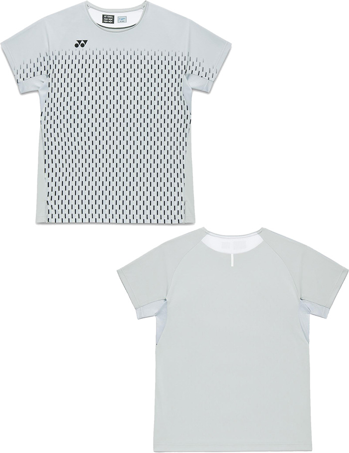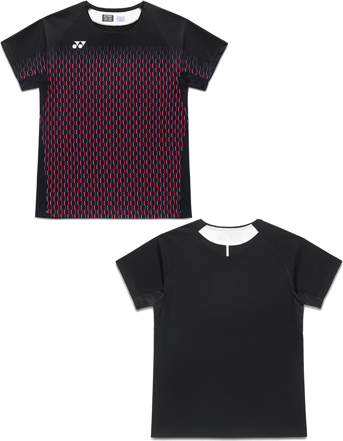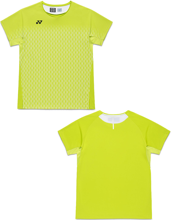 バドミントンのゲームシャツは伸び方向の違うパーツを脇下へ配置することでウェアの突っ張り感が解消され、動きやすい独自形状。