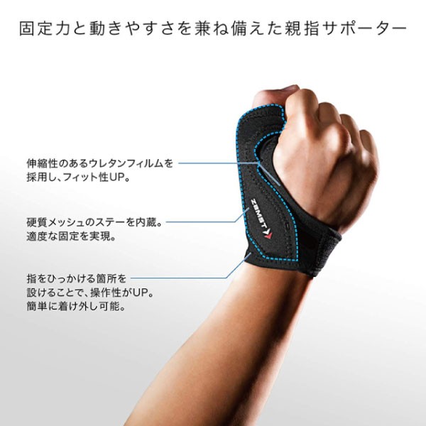 親指の圧迫・軽い固定に最適。2ステップの簡単装着で、親指の動きを優しくサポート。伸縮性の高いウレタンフィルム素材を採用しており、薄くフィット感が抜群です。