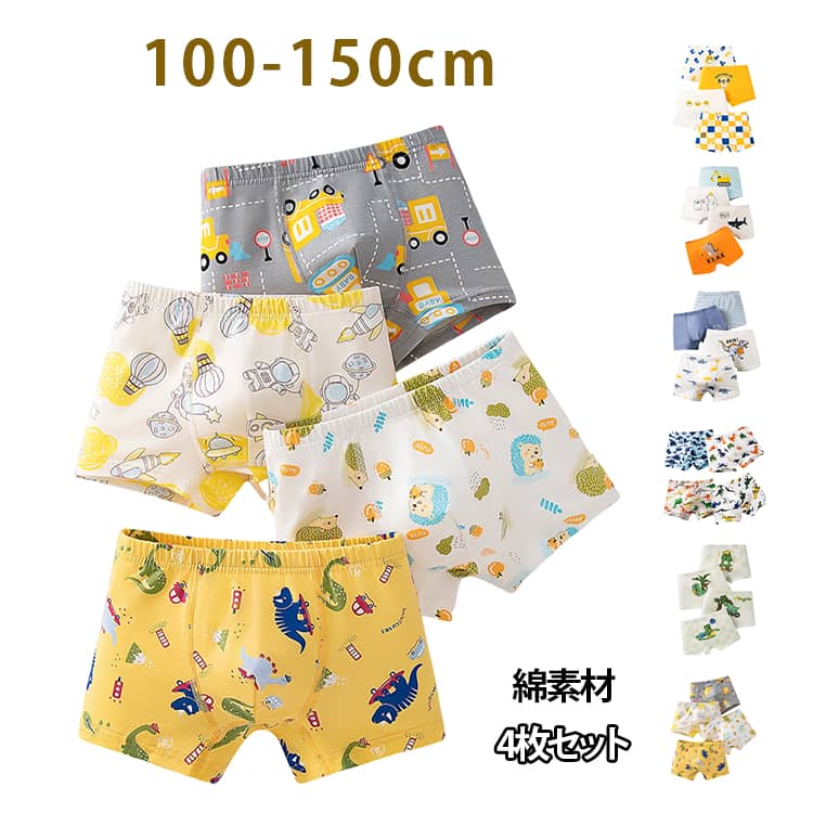 | 4枚セット 綿素材 100-150cm オシャレなキッズボクサーパンツ 伸縮性のある薄手の生地(ストレッチ性あり) 綿混の優しい肌ざわり。 お肌のデリケートな男の子にも安心。 | |