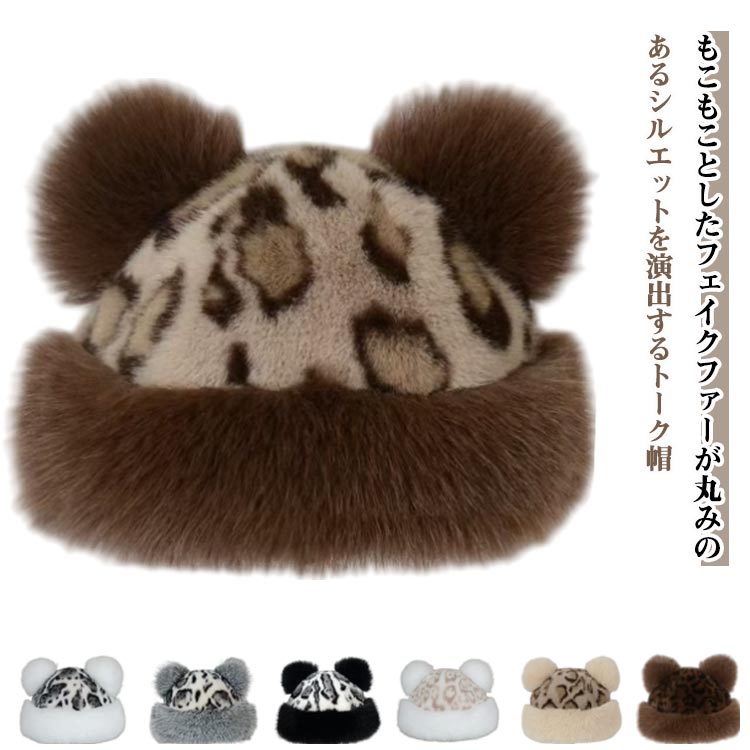 レディース フェイクファー ヒョウ柄 ロシアン帽 レオパード ボアキャップ ふわふわ 厚手 3色セット 暖かい ロシアン帽 おしゃれ トーク帽 防寒