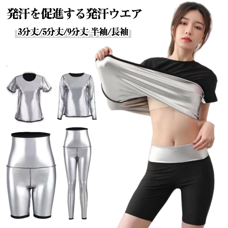 | 発汗を促進するトレーニングウェア 着るサウナ 3分丈/5分丈/9分丈 半袖/長袖 発汗を促進し効率的に汗をかくためのトレーニングウェアです。 特殊な素材で作られており、体温を閉じ込めて保温効果を高めることで、短時間でもしっかり発汗できます。 ダイエットやデトックス、代謝アップを目指す方に最適で、ジムでの運動や自宅でのトレーニング時に活躍します。 軽量で動きやすく、スタイリッシュなデザインのものも多いため、ファッション性と機能性を兼ね備えています。 発汗による爽快感を求める方におすすめのアイテムです。 発汗作用で、ポッコリお腹、太もものダイエットだけでなく、新陳代謝を高めることで美肌効果も期待できます。 ジョギング、ウォーキング、ヨガなど、フィットネスとスポーツに活躍できます。 | |
