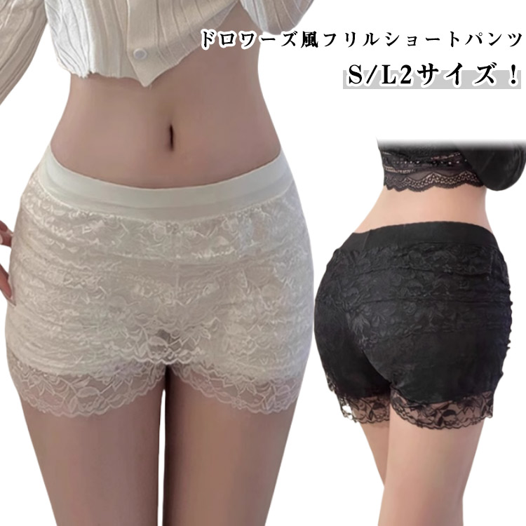 | ドロワーズ風フリルショートパンツ S/L2サイズ! キッズ、ジュニアも、レディースも着用可能 柔らかいフリル レースで伸縮性抜群です。 | |