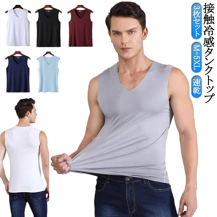 | 3枚セット!接触冷感 タンクトップ。 接触冷感で着用した瞬間にひんやり感を感じます。暑い日を快適に過ごしたい方におすすめです。 吸汗速乾でサラっとした着ごこち。汗を素早く吸収してサッと乾くから、汗をかいても嫌なベタつきを軽減します。 締め付け感が少なく、軽く、ラインがアウターに響きにくい使用にしております。 ビジネスシーンはもちろん、お出かけ等の普段着やスポーツやアウトドアや冠婚葬祭やパーティウエアの下にもご着用いただけます。 | |