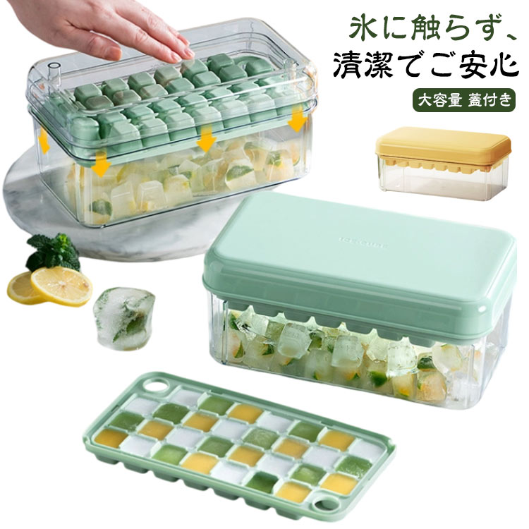 | 【ワンプッシュ式で氷取り出しやすい】製氷皿は独自の対角プッシュ設計で、製氷皿をワンプッシュするだけで、1秒で氷が簡単に外れます。ほかの氷作る容器が手で氷を一つ一つ外すことより、省力するし、時間も節約する! 【氷に触らず、清潔でご安心】アイストレーを反転して、フタをして、対角線上で軽く押すと、アイスキューブがばらばらと外れる。さらに、アイススコップ付きなので、外れたアイスキューブをアイススコップで使える。全過程が氷に触れることなく、清潔であり、手も濡れてしまう心配がありません。 【大容量の氷入れる容器で満足】氷60個ぐらいが入れる大容量の氷入れる容器付きなので、多めのアイスキューブを貯蔵してご使用いただけます。氷トレーは一回30個取りの四角氷を凍らせる。冷たい飲み物を飲んで、涼しい夏を過ごしましょう。 【蓋付きで臭みの侵入を防ぐ】家庭用のアイストレイは気密蓋で設計されており、余分な水がこぼれて凍結するのを防ぎます。さらに、気密設計により、氷が冷蔵庫の臭みを吸収するのを防ぎます。 【氷だけでなく、幅広い用途】氷作りのアイストレー以外、離乳食の冷凍小分けやゼリーやグミなどのお菓子の成形型として、寒天寄せや押寿司などの前菜やフィンガーフードなどの食事つくり、食事の小分けや冷凍保存、エスプレッソにもおすすめです。 | |