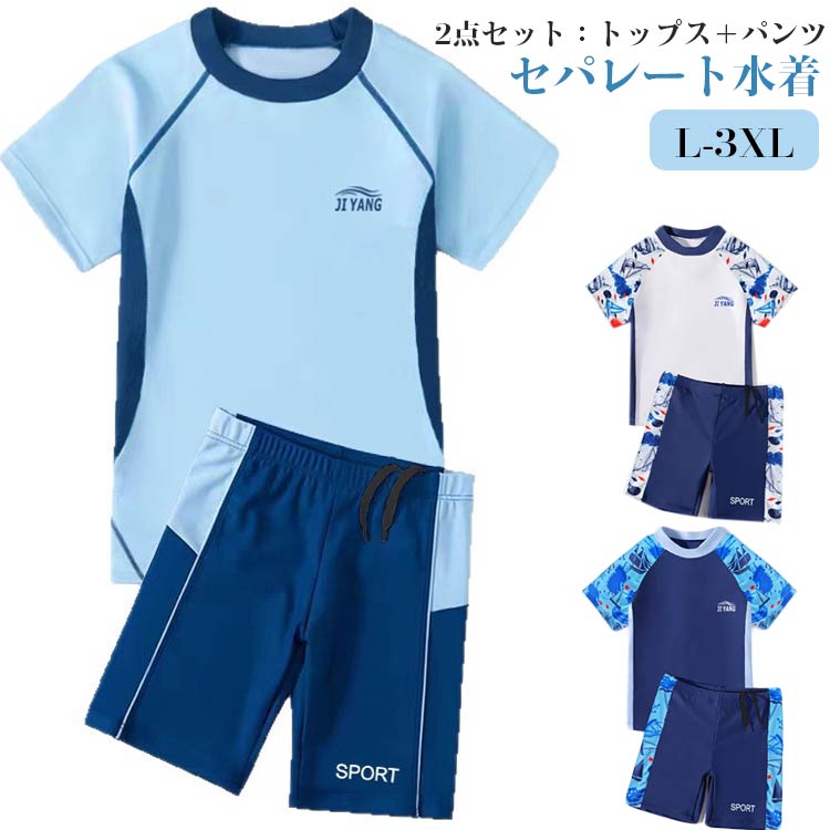| セパレート水着 2点セット:トップス+パンツ セパレートタイプなので脱ぎ着楽々!! もちろん紫外線対策もばっちりでお肌を守ります、防菌防臭・日焼け対策♪♪ 吸汗速乾通気のドライ繊維、プールや水遊び運動の後もさらっとした着心地♪♪ 海やプールはもちろん、スクール水着としてもおすすめ。 | |