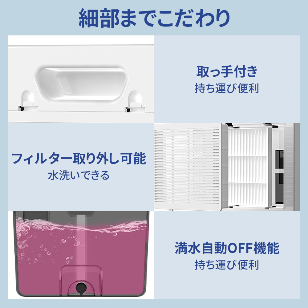 【革新的な半導体技術】電力を利用して熱を移動させる半導体熱電素子「ペルチェ素子」を採用した除湿機。空気を冷却し、結露を引き起こして湿気を取り除く仕組みです。除湿量は1日あたり450mlで、カビの発生を防ぎ、湿気や結露対策に最適。梅雨や夏の湿気対策、冬の結露対策として、年間を通して使用できます。【ご注意】除湿機の定格除湿量は、室温30℃、相対湿度85%の条件下での1日(24時間)の除湿量です。