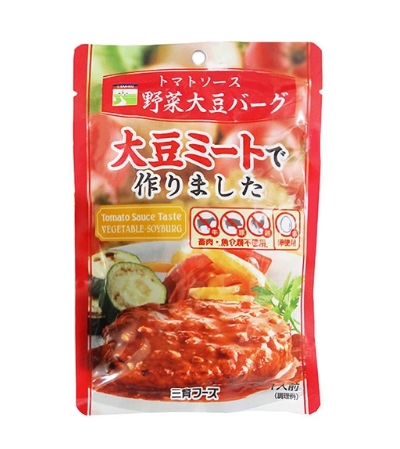 たまねぎ(国産)、粒状大豆たん白、キャベツ、パン粉(小麦を含む)、植物油脂、粉末状大豆たん白、植物性粉末ブイヨン、砂糖、でん粉、卵白粉(卵を含む)、みりん、醤油、香辛料、ココア、ソース(トマトピューレ、たまねぎ(国産)、トマトケチャップ、ソース(りんごを含む)、なたね油、小麦粉、砂糖、植物たんぱく酵素分解物、香辛料)