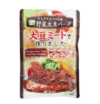 ・大豆にキャベツと玉ねぎをたっぷり加えて作った野菜大豆バーグに、野菜をじっくり煮込んだコクのあるデミグラス風ソースを加えておいしく仕上げました。