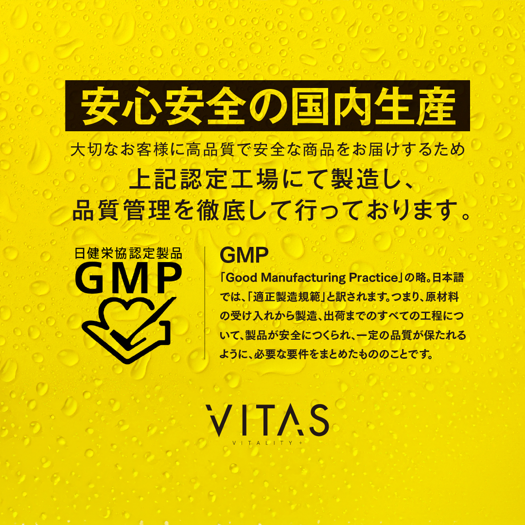 大切なお客様に高品質で安全な商品をお届けするためGMP認定工場にて製造し、品質管理を徹底して行っております。