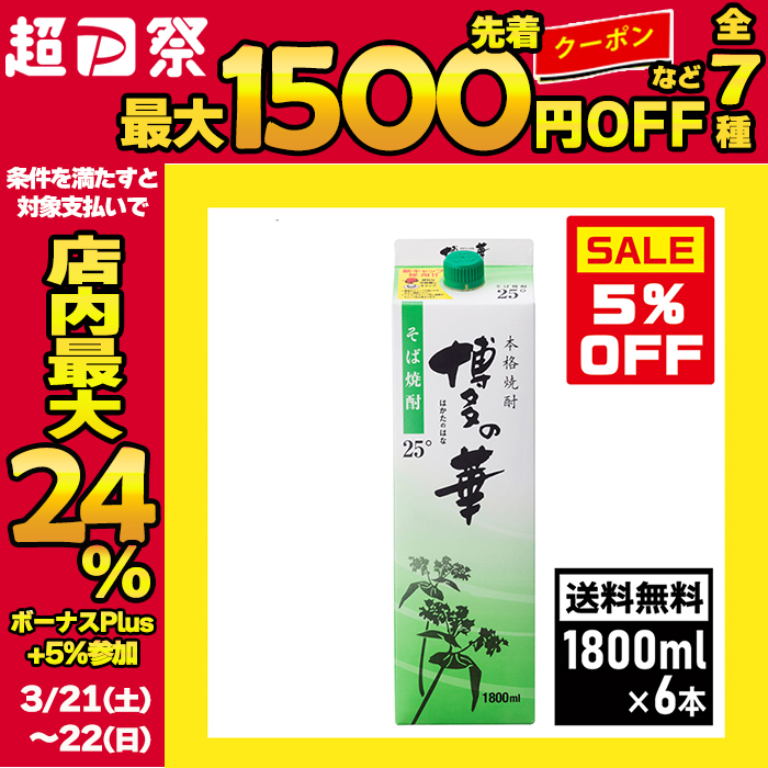 5%OFF そば焼酎 博多の華 そば 25度 紙パック 1800ml×6本 1ケース 蕎麦焼酎 福徳長酒類 本格焼酎 はかたのはな 蕎麦 爆買 パック酒