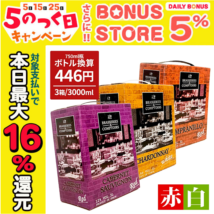 『バッグインボックスワイン(紙パックワイン)3,000ml』赤白3個 ワインセット