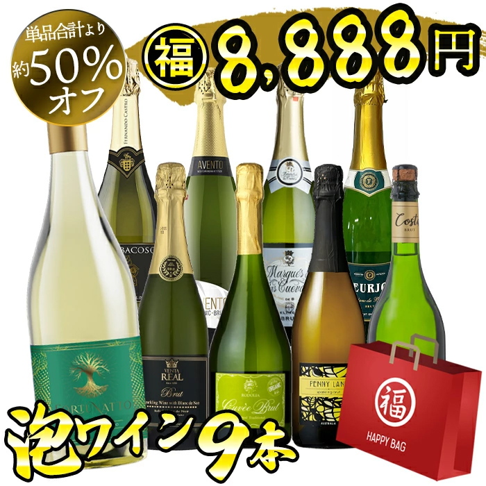ワイン福袋 ワイン ワインセット スパークリング好き飲み比べ 9本セット 辛口 福袋 泡ワイン スパークリングワイン 爆買