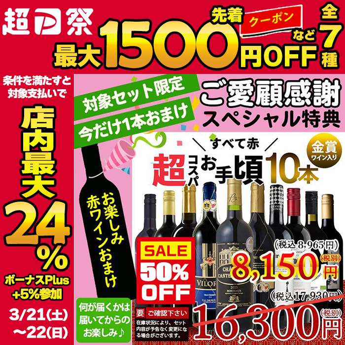 超PayPay祭 50%OFF 今だけ1本おまけ ワイン ワインセット 超コスパ 厳選お買い得 赤ワイン 10本 赤ワインセット 辛口 送料無料 爆買 EV