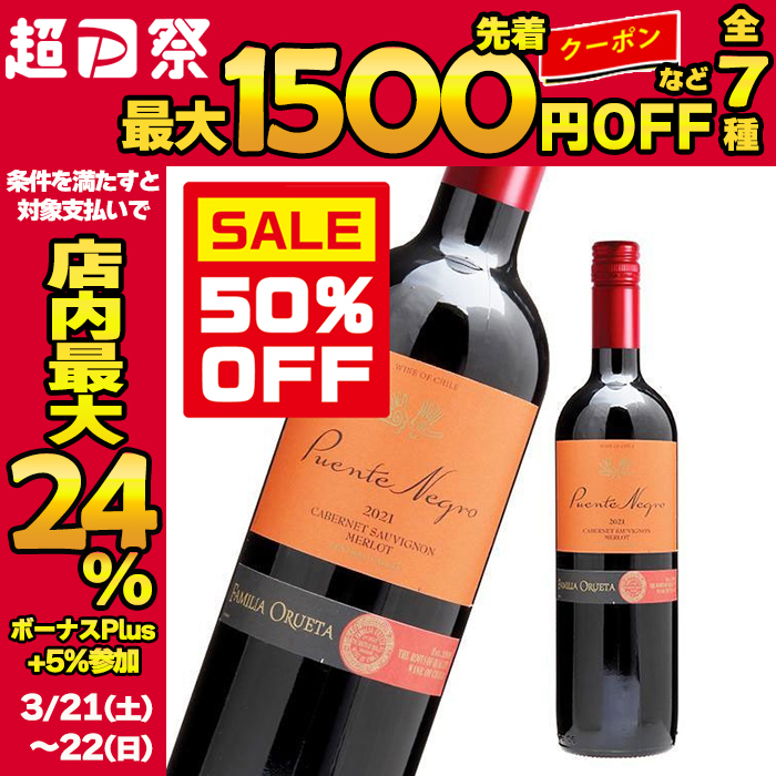 超PayPay祭 50%OFF ワイン 赤ワイン プエンテ ネグロ 赤 チリ産 辛口 赤 チリワイン WINE 爆買