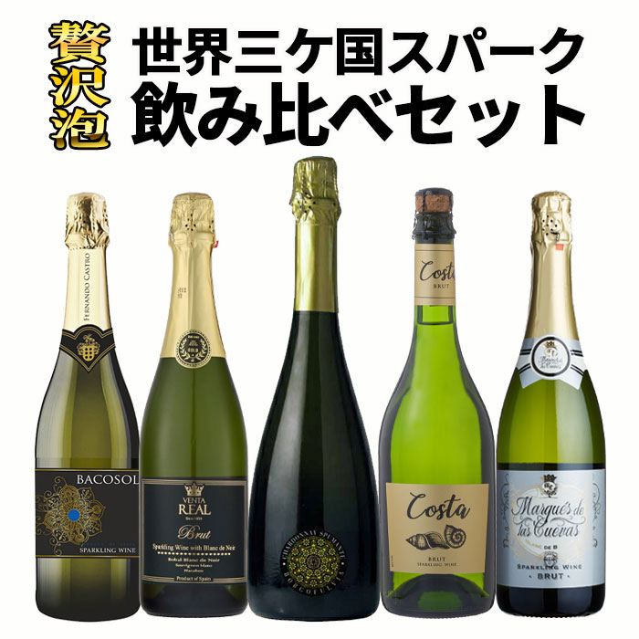 ワインセット お得すぎる 世界三カ国 スパークリングワイン 飲み比べ 5本セット スパークリングセット 泡 スパーク 辛口 金賞受賞 1126 爆買
