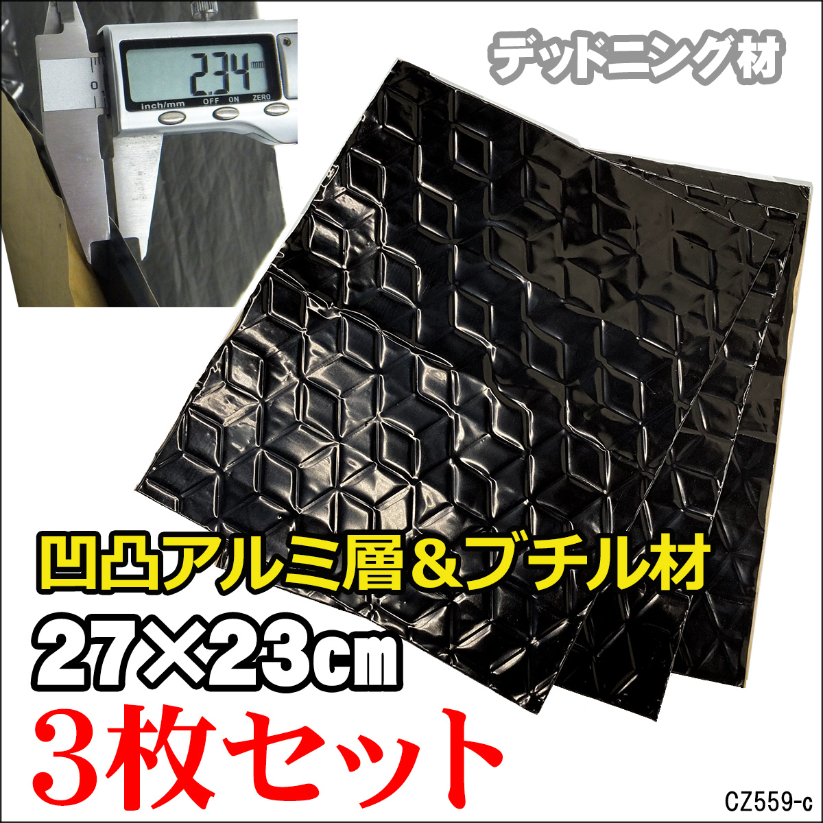送料無料 デッドニングシート Kc お買い得 3枚セット 27×23cm 厚さ2.3mm以上 ! 制振シート 車 防振材 黒 菱文様 メール便