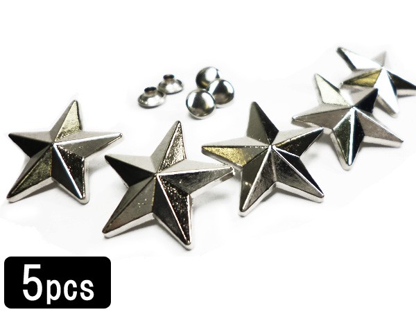 送料無料 カシメ打ち スターL 5個セット 星型 スタッズ リベットパーツ【05】 メール便