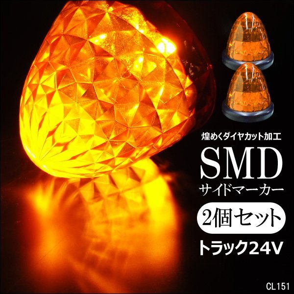 送料無料 24V用 2個組 バスマーカー トラック 16LED サイドマーカー スモール ブレーキ連動 ダイヤカットレンズ 黄色 アンバー レタパ
