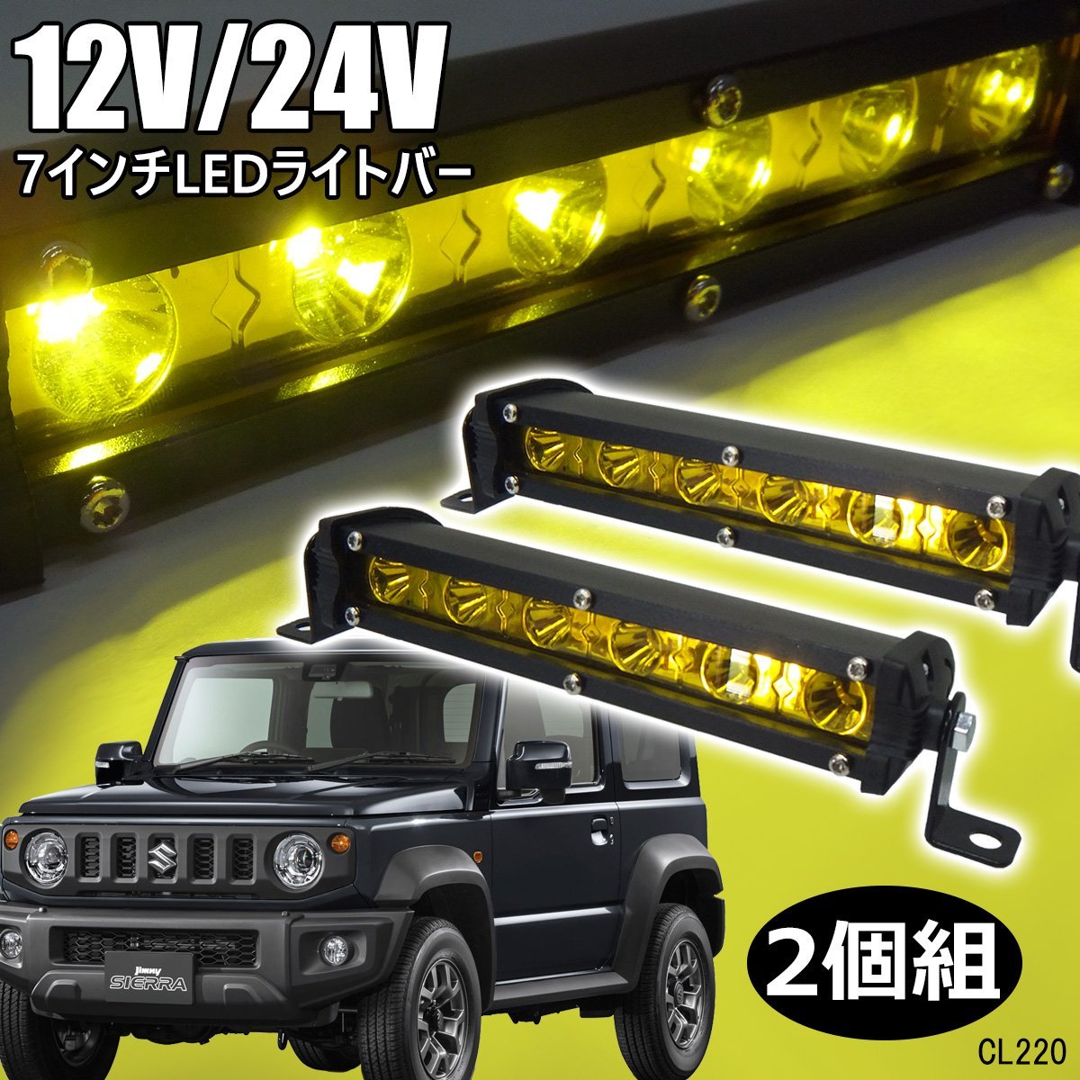 送料無料 ライトバー Q イエロー 黄色 防水 12V 24V LED 作業灯 オフロード SUV 4WD 7インチ IP67 2個セット レターパック