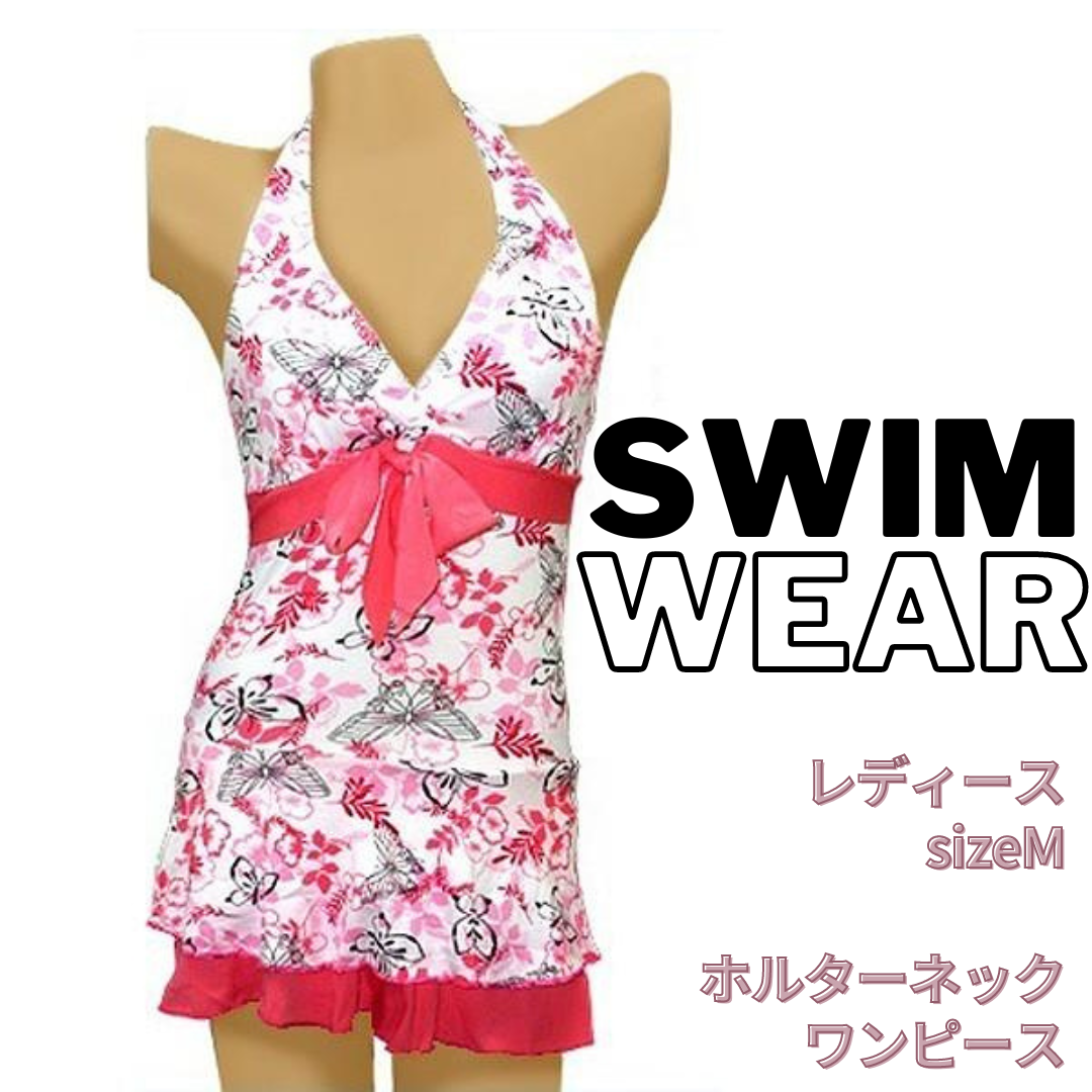 訳あり処分特価!送料無料 レディース 水着 ワンピース ホルターネック ピンク Mサイズ 体型カバー水着 G レターパック