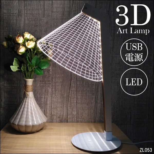 3Dアートスタンド 電気スタンドホワイト LEDスタンドライト テーブルランプ USB電源【12301】