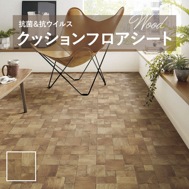 E1051 クッションフロア 抗菌 シンコール木目 ウッド 1.8mm厚 182cm巾 ブロックウッド