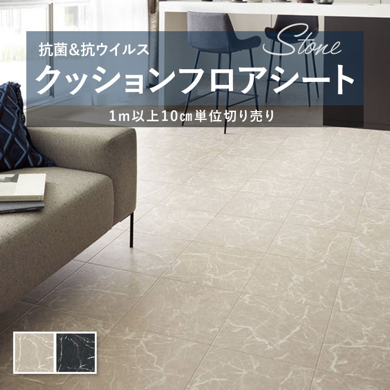 クッションフロア 抗菌 シンコール 石目 タイル ストーン 1.8mm厚 182cm巾 グランマーブル ベージュ ブラック