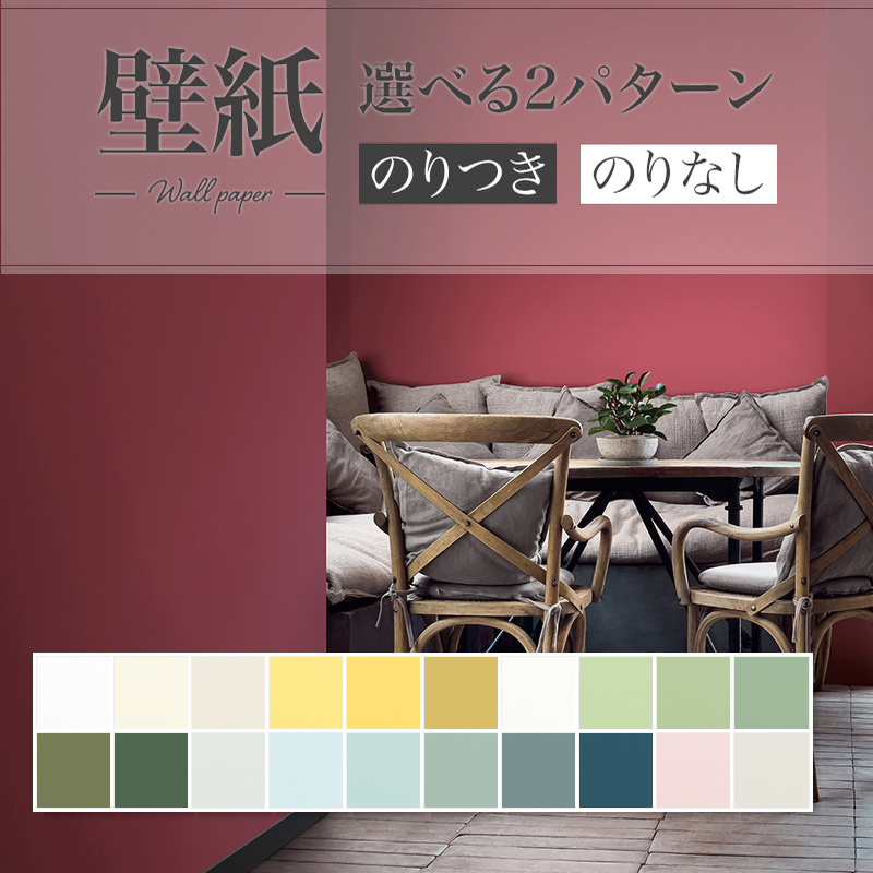 壁紙 無地 ホワイト系 ブルー系 グリーン系 イエロー系 レッド系 黒系 おしゃれ diy 賃貸 リフォーム 貼替 リビング リリカラ V-wall クロス のりなし