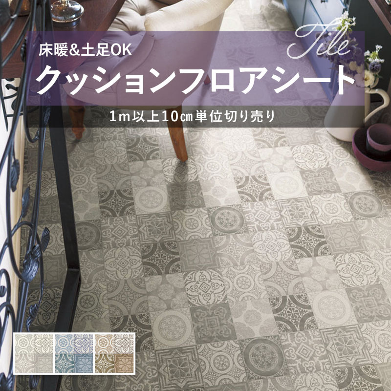 大特価SALE クッションフロア 抗菌 シンコール 2.3mm厚 182cm巾 アンティグオ タイル
