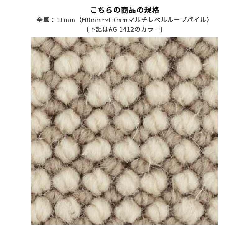 全厚:11mm(H8mm〜L7mmマルチレベルループパイル)