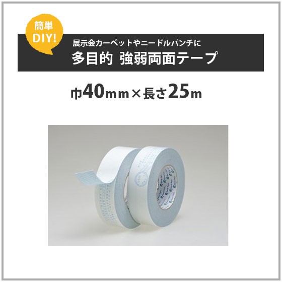 両面テープ920 塩ビ平滑面へのニードルパンチ等の固定 巾40mm 長さ25m 353-706