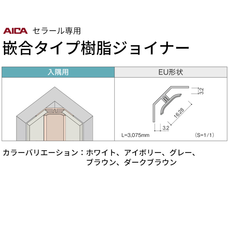 入隅用 EU形状 2本入 ZA-2EU2 アイカ セラール 嵌合タイプ樹脂ジョイナー 送料無料