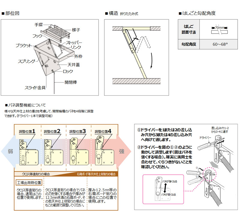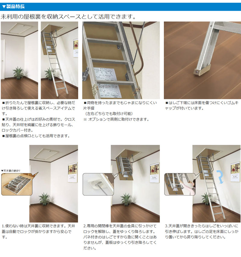 ■折りたたんで屋根裏に収納し、必要な時だけ引き降ろして使える省スペースアイテムです。