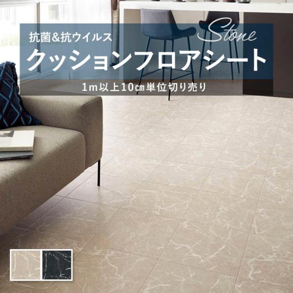 クッションフロア 抗菌 シンコール 石目 タイル ストーン 1.8mm厚 182cm巾 グランマーブル ベージュ ブラック
