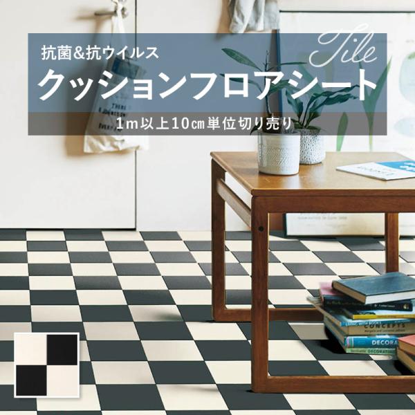 E1119 クッションフロア 抗菌 シンコール 1.8mm厚 182cm巾 ツートーン ホワイトブラック